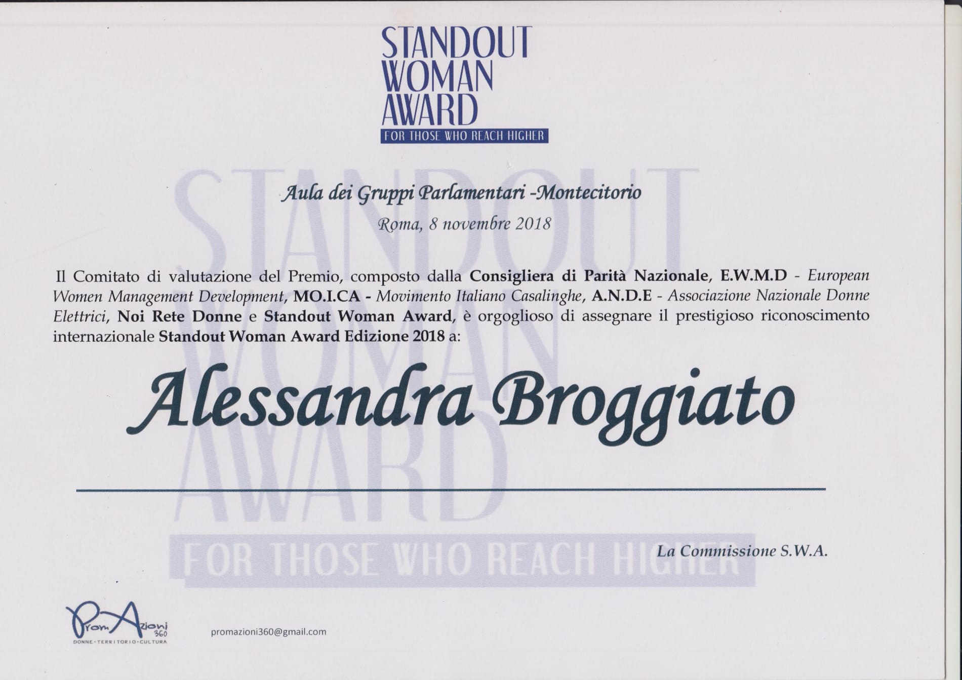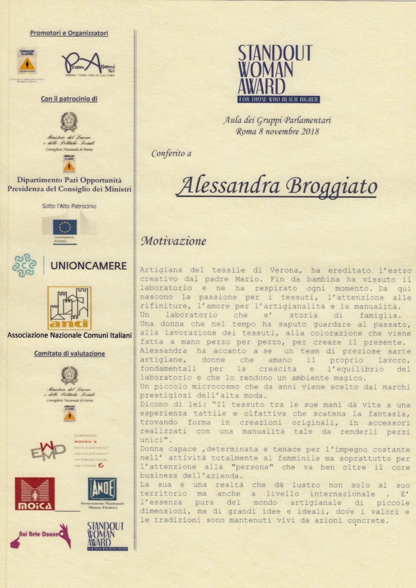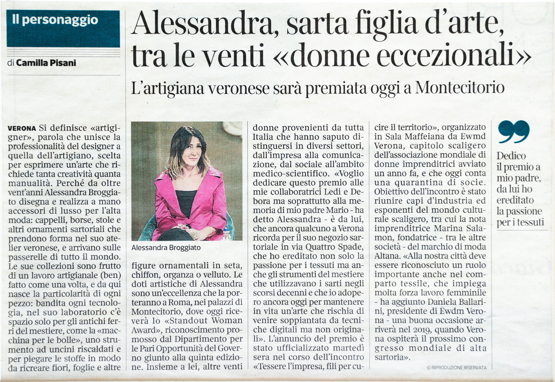 Alessandra figlia d’arte, tra le venti “donne eccezionali”